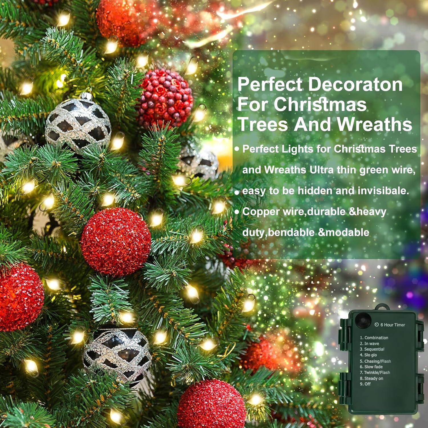 🍃Green Waterproof Bendable Copper Wire:10FT waterproof bendable copper wire could be shaped into any symbols,be your own designer to shape it as you like. Festive glow to your decor with high brightness 100 LED Warm White Mini Christmas Lights. Enhancing indoor and outdoor lighting in every holiday season. Between lights length :1.4 inch