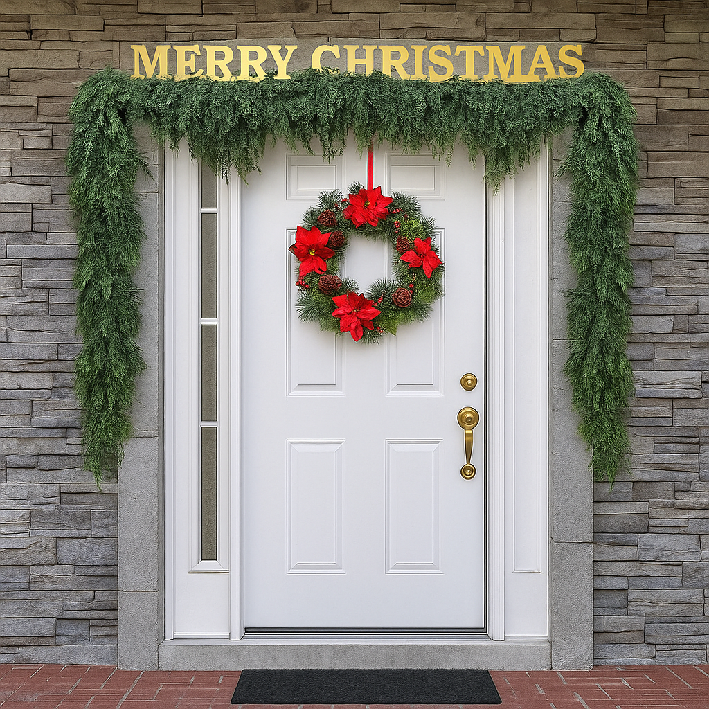 🍃Realistic Cedar Look :Crafted with high-quality artificial cedar leaves that mimic the natural texture and rich green tones of fresh cedar, giving your holiday décor a true woodland charm.